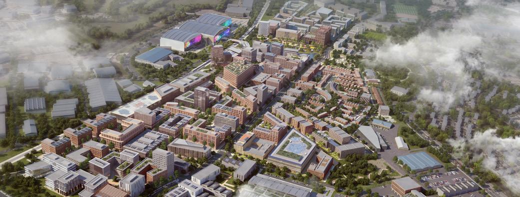 There will also be a 19,000seat arena, schools, offices, laboratories, hotels, pubs, community centres, a research campus, cafes and restaurants.