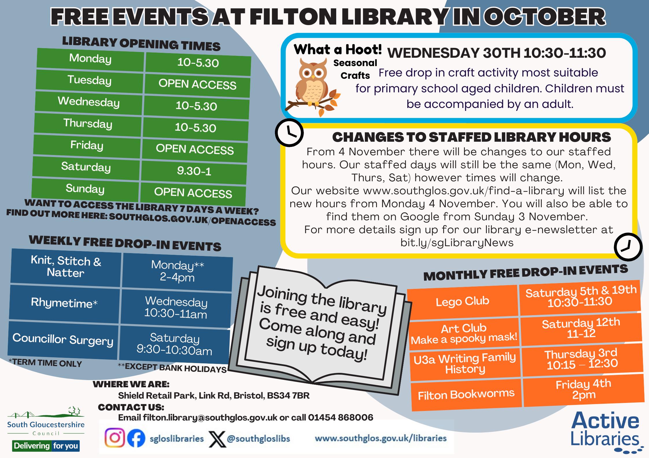 Are you interested in joining a reading group? Come along to the Bookworms monthly reading group at Filton Library! 1st Friday of each month at 2:00pm If you are interested in Joining, please as inside the library. If you are interested in Joining, please as inside the library. Phone: 01454 868006 or Email: Filton. library@southglos.gov.uk