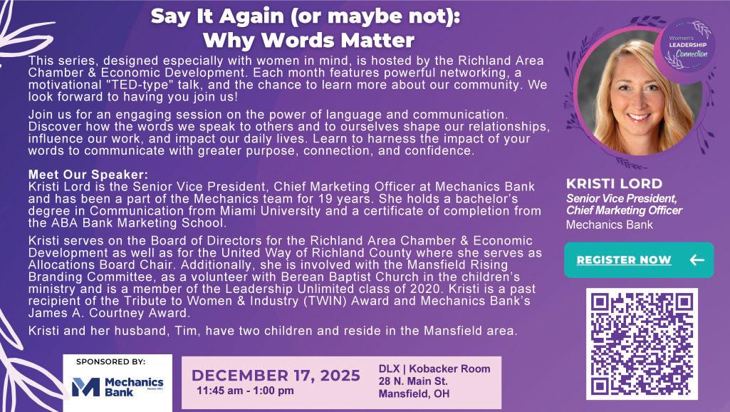 I encourage you and your teams to visit www.richlandcrawfordworks.com. This site is designed to make the process of applying for training funds easier and more accessible than ever before, connecting our local talent and businesses with the necessary resources to maximize upskilling opportunities.