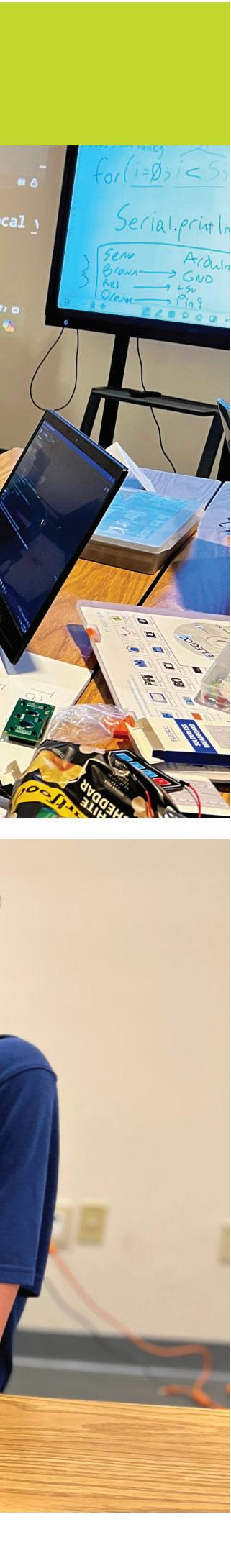 I furiously used the up arrow to catch the mole running across the screen. Then the down arrow; and a quick right arrow. A middle school student coded a whack-amole game using Microsoft’s MakeCode Arcade during a Code a Carnival Camp at the NC State Kehoe Center in June. Soon after, laughter echoed down the hallway as the 25 students set up traditional carnival games enhanced with a micro:bit pocket-sized computer to make the game shake, light up, or keep score. Parents and community members played the carnival games and learned about the coding experience.