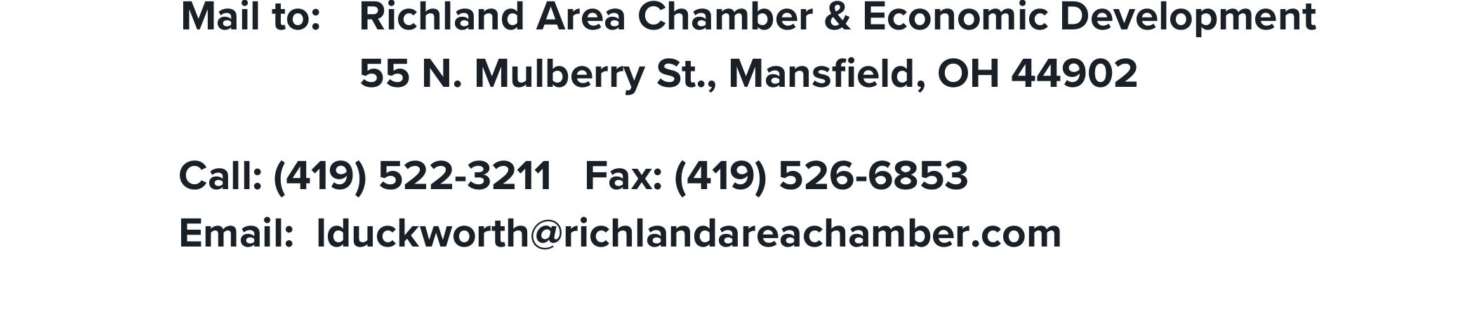 Tonominateabusinessororganization,returnthisformORemailLisaatlduckworth@richlandareachamber.com withyournominationselection(s),orcompleteonlineformat portal.richlandareachamber.com/form/view/23293.