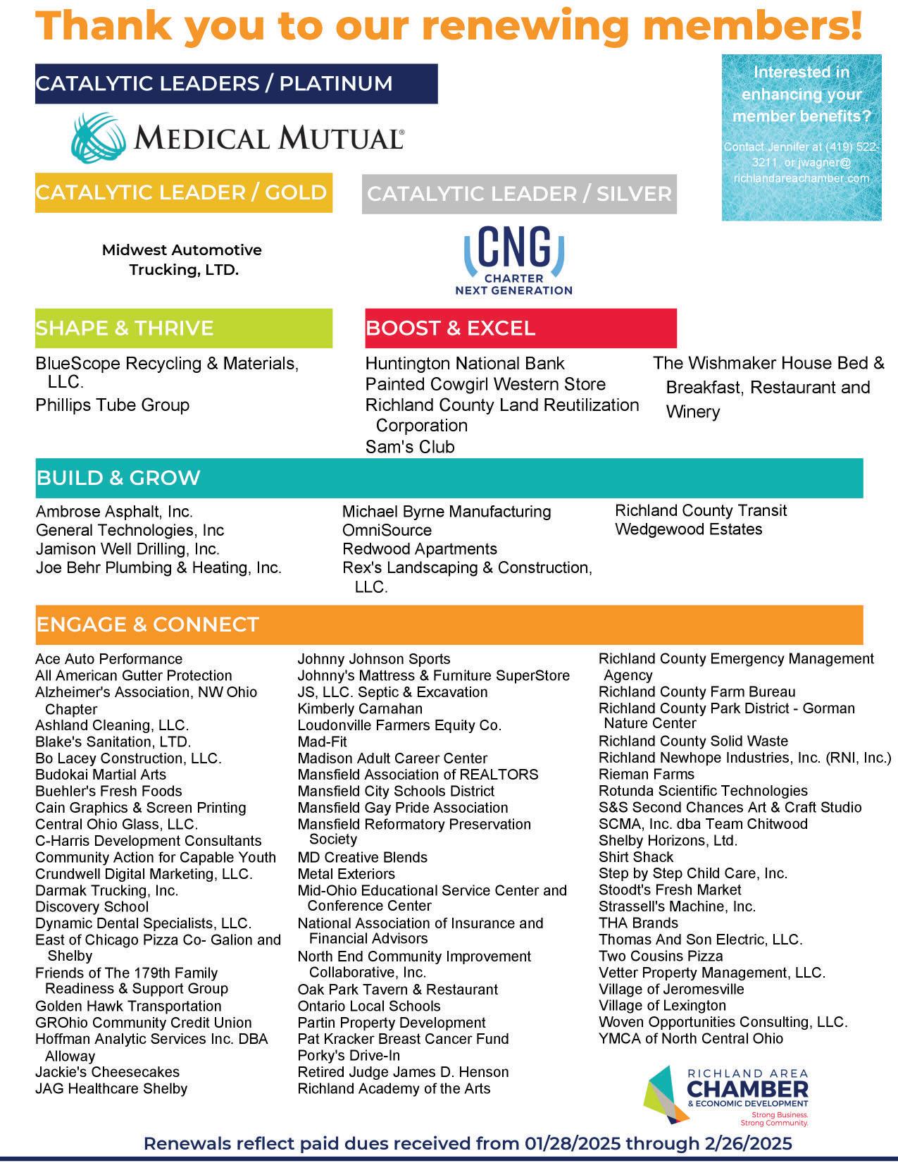 Email:lduckworth@richlandareachamber.com Mail:RichlandAreaChamber&Economic Development•55N.MulberrySt.,Mansfield44902