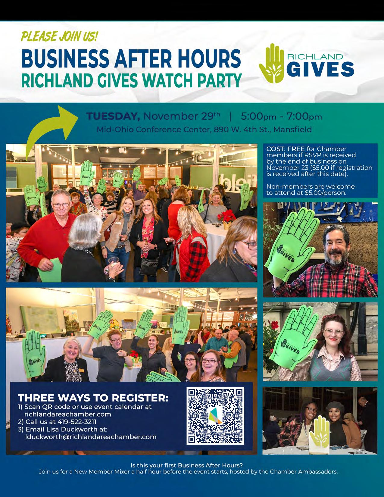 Chamber members can also support this event and promote their business by contributing an item to the auction. Contact Lisa Duckworth at 419 522 3211 or lduckworth@richlandareachamber.com.