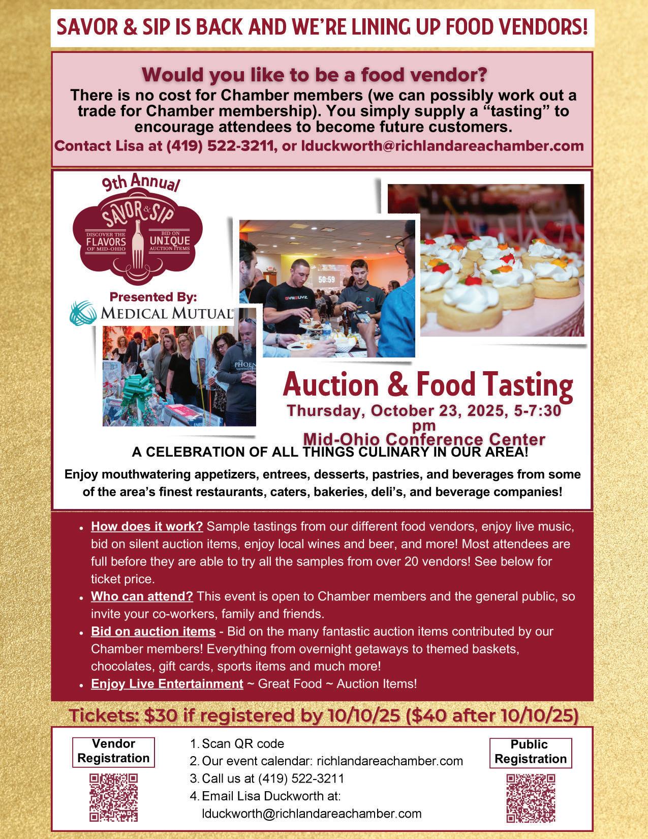 10/23/25 Savor & Sip, Mid Ohio Conference Center, 5-7:30pm