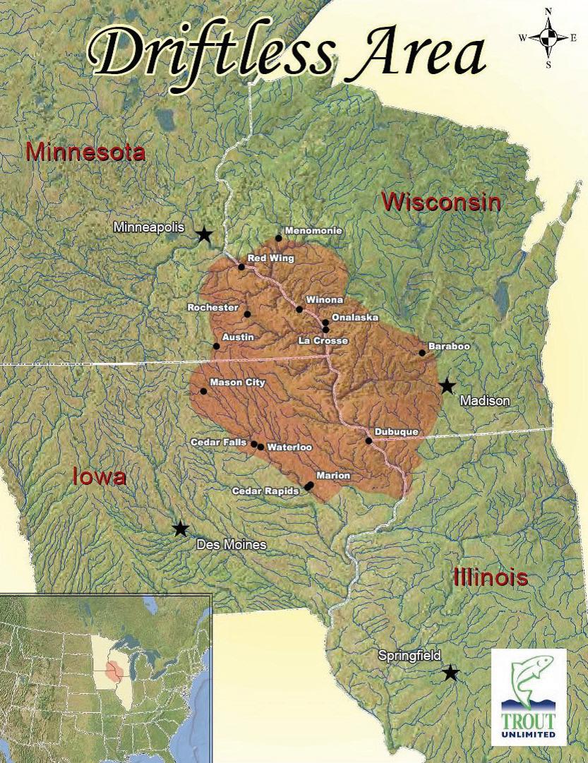 The bluffs you see across Grant County - that give us such spectacular views - can be attributed to the last ice age. As glaciers flattened several parts of the Midwest some 10,000 years ago, this area was left mostly untouched. When the ice receded, the waters they unleashed carved the valleys we navigate today. The Driftless Region spans 24,000 square miles of the Upper Mississippi River Valley in parts of Wisconsin, Iowa, Illinois and Minnesota. The hills, the waterways, and even the vegetation here make a stunning and beautiful region like nowhere else. Welcome to “the Driftless.” Used by permission of Trout Unlimited.