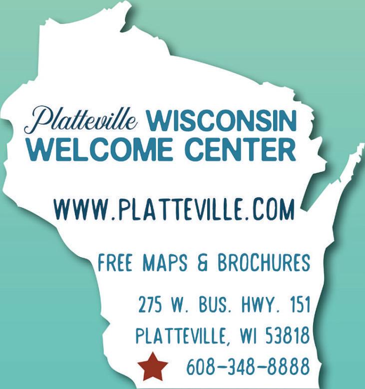 Visit the Wisconsin Welcome Center for your FREE map at 275 W. Hwy. 151, Platteville, WI. OPEN YEAR-ROUND!