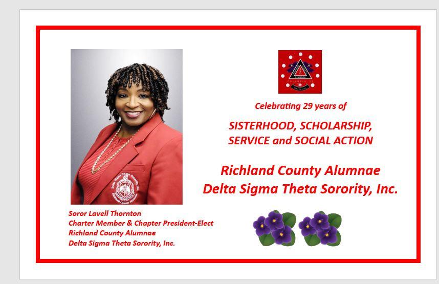 On April 24, 1994, in Columbia, South Carolina under the direction of past South Atlantic Regional Director, Nettie Faulcon, 44 women chartered the Richland County Alumnae Chapter (RCA) of Delta Sigma Theta Sorority, Incorporated. RCA became the second chapter in the Columbia Metropolitan area and the 867th chapter of Delta Sigma Theta Sorority, Incorporated.