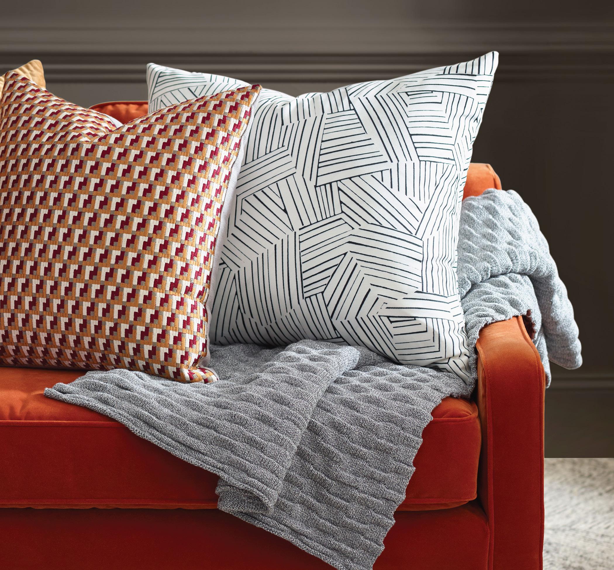 Decorative pillows are the finishing touch to any hospitality space. From pleated velvets and embroidered textures to printed patterns, our pillows can be customized in color, size, and construction to meet brand standards and hospitality laundering requirements, elevating the guest experience through detail and craft.