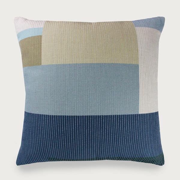 Pieced construction allows for creative composition and dynamic design. Pillows can be crafted using a single fabric for subtle tonal variation or multiple fabrics for contrast and visual interest, as seen in styles like Otley.