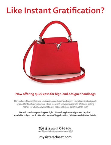 Now offering quick cash for high-end designer handbags Do you have Chanel, Hermes, Louis Vuitton or Gucci handbags in your closet that originally retailed for four figures or more (shhh, we won’t tell your husband)? Well now getting money for your luxury handbags is easier and more satisfying than ever. We will purchase your bag outright. No waiting for consignment required. Available only at our Scottsdale Lincoln Village location. Visit our website for details.