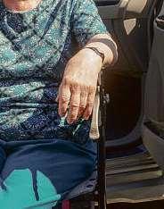 Another time, on my way to the ICU to see my quadriplegic husband, my dog pulled so hard that my scooter toppled over