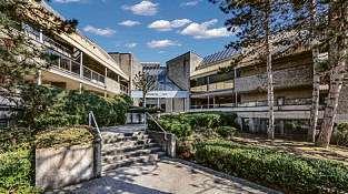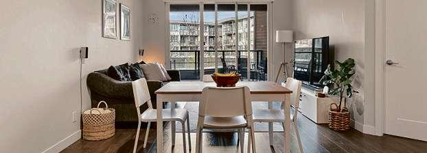 view Efficient layout with master bdrm away from others. Open kitchen 1 parking & bike locker Rental & pet friendy Pictures taken while tenanted, now vacant & freshly painted Complex has equipped gym, sauna & ping-pong room