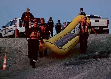 plete with dry suits, took an inflatable craft into the river to rescue the male