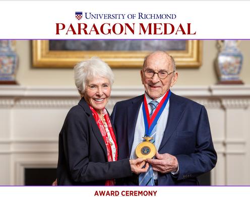 First awarded to E. Claiborne Robins in 1986, the Paragon Medal recognizes an individual whose extraordinary commitment, involvement, affection, and benevolence have been critical to the University’s prosperity This award may only be held by one individual at a time and awarded no more than once every 15 years.