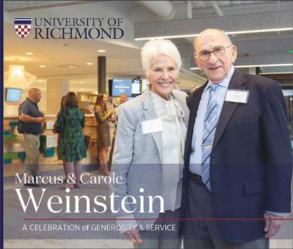 From January to October 2022, the Director of Donor Relations and the ADDC partnered to fully research, write, and design a donor impact book for the Weinstein family, recognizing their tremendous generosity to the University of Richmond over the past 50 years