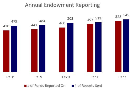 Our endowment reporting process continues to grow steadily with the addition of new funds.
