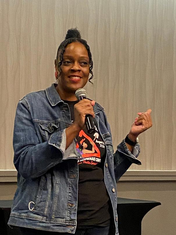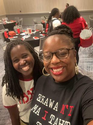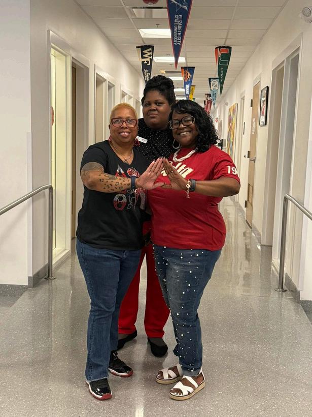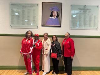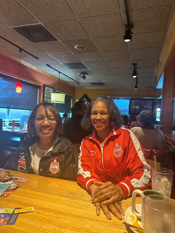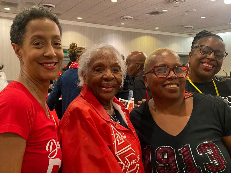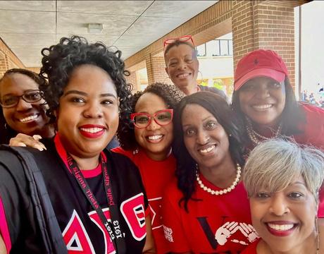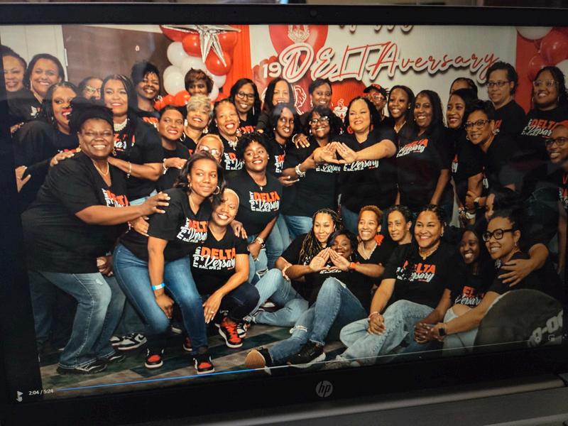 During the Spring 2024 1 Deltaversary celebration, this photo was taken with Soror Catharine Richardson #5. Soror Evans, Barden and Exum all wor the same shirt to the event (no planned) and they are all 5's.
