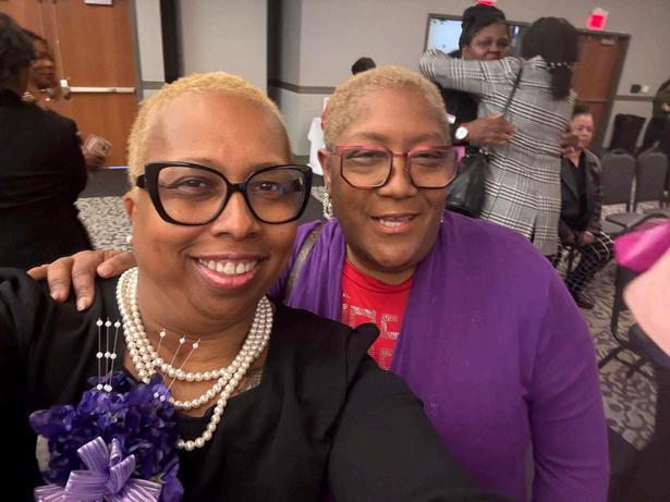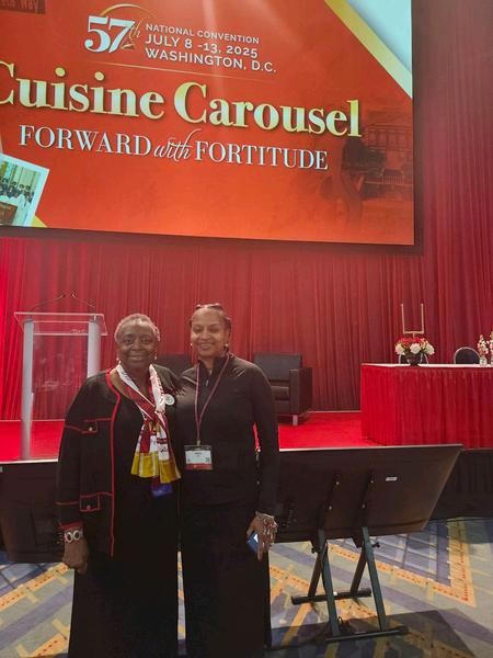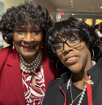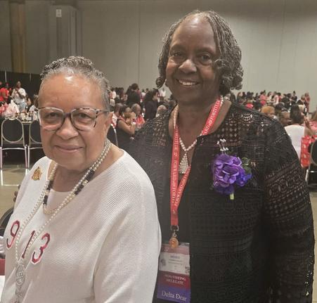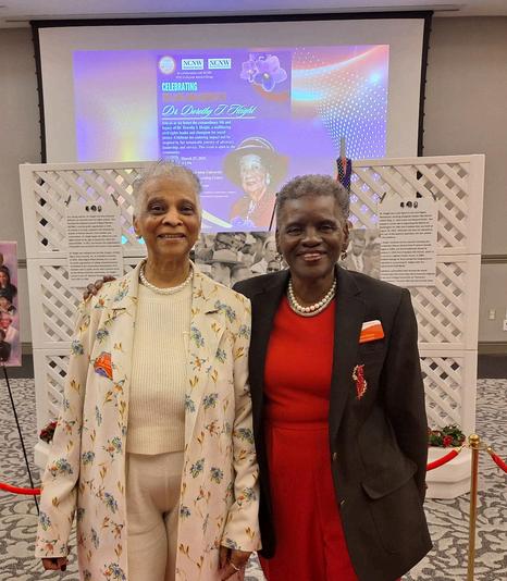 MRS. MARY MICKLE, A PAST PRESIDENT OF NCNW, IS PICTURED WITH SOROR CAROLYN CHAMBERS. MRS. MICKLE WAS A VERY GOOD FRIEND OF DR. HEIGHT.