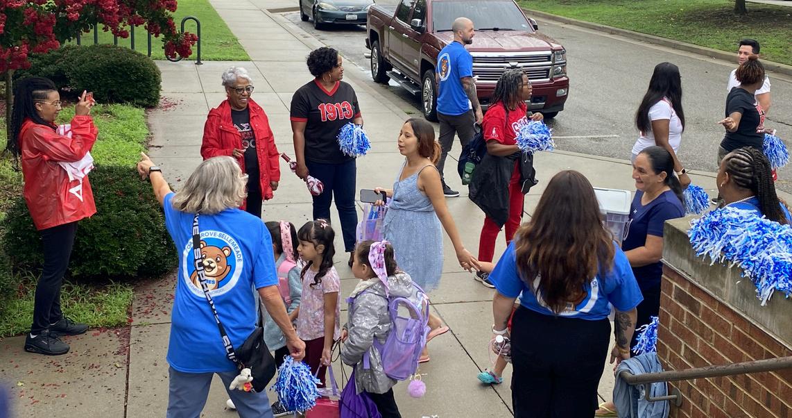 First day of school welcoming & cheering students at Oak Grove-Bellemeade Elementary School J l 22 2024