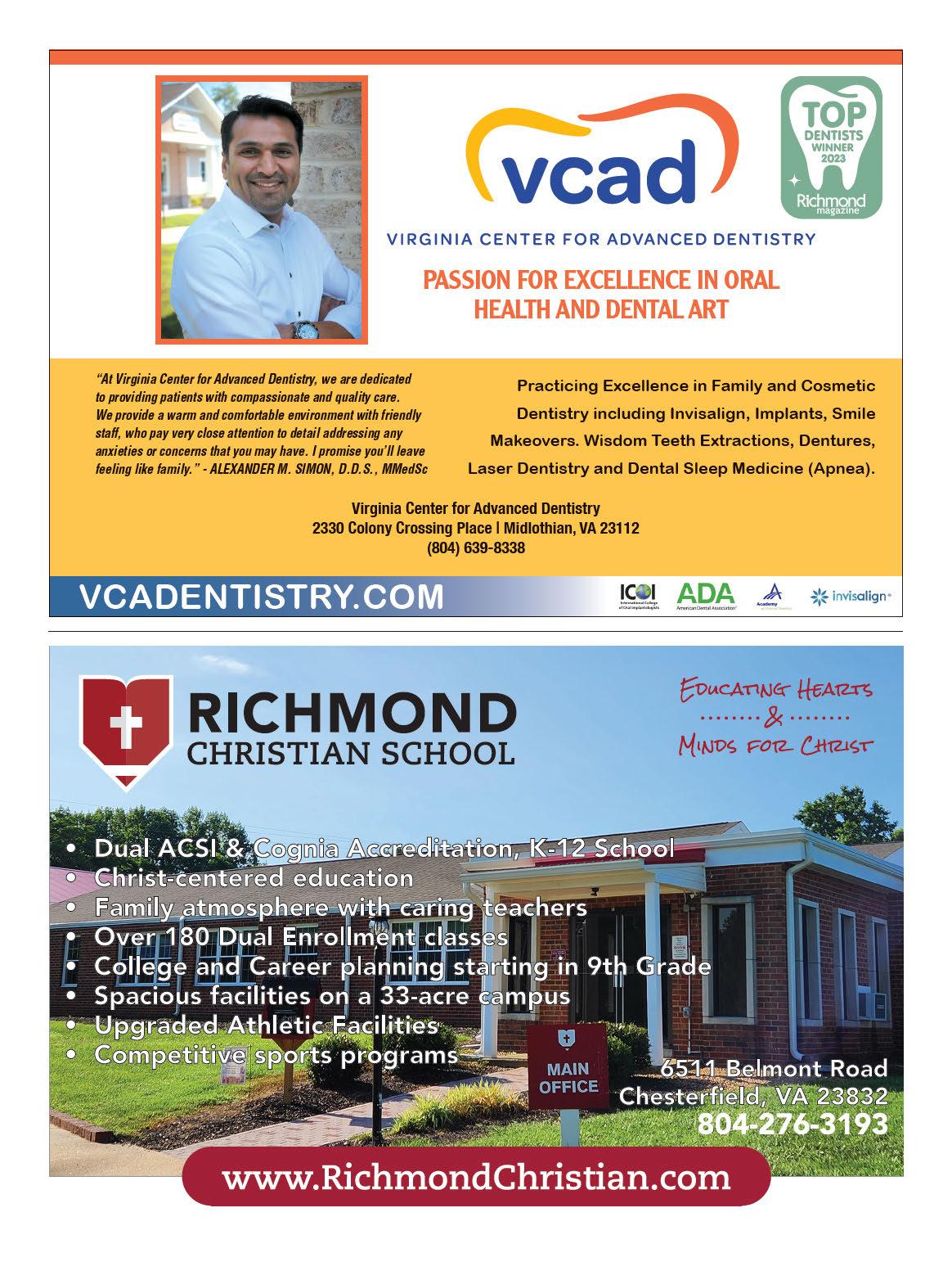 According to Jimmy Wright, president of the Je erson Scholars Foundation, one Richmond-area public school student was named a Je erson Scholar: Ishita Bakshi of Douglas S. Freeman High School. In addition, Blanly Teresa Rodriguez of Monacan High School is one of 17 recipients of the foundation’s Walentas Scholarship, which supports students who would be in the first generation of their families to earn a bachelor’s degree. —MN