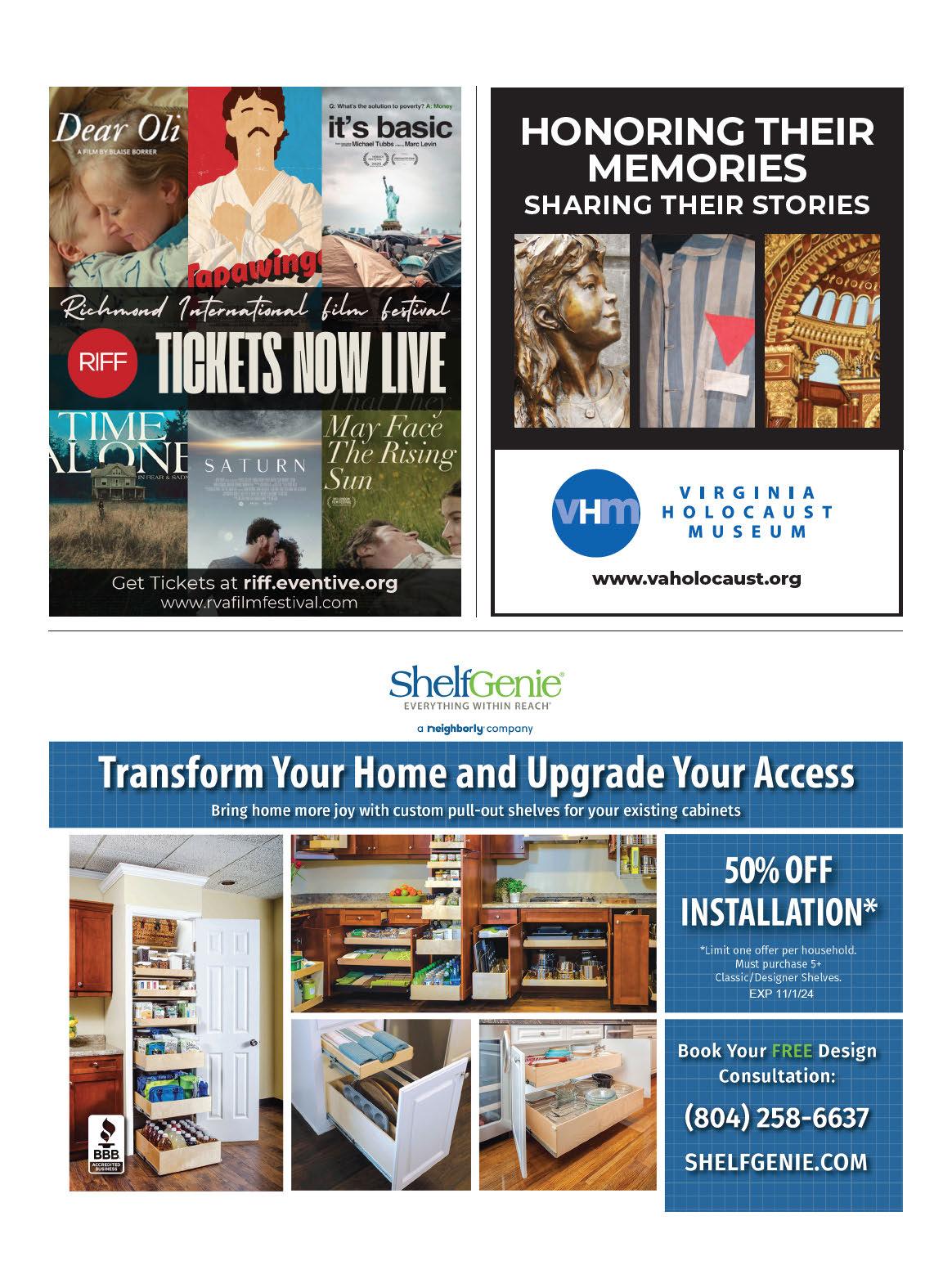 the Garden concert series continues with rock band Guster on Sept. 24. HarvestFest ushers in the fall with cra s, pumpkins and autumnal displays on Oct. 27. And The Dominion Energy GardenFest of Lights sets the garden aglow with more than a million dazzling bulbs, Nov. 18-Jan. 5, 2025. To see more upcoming programming, visit lewisginter.org.