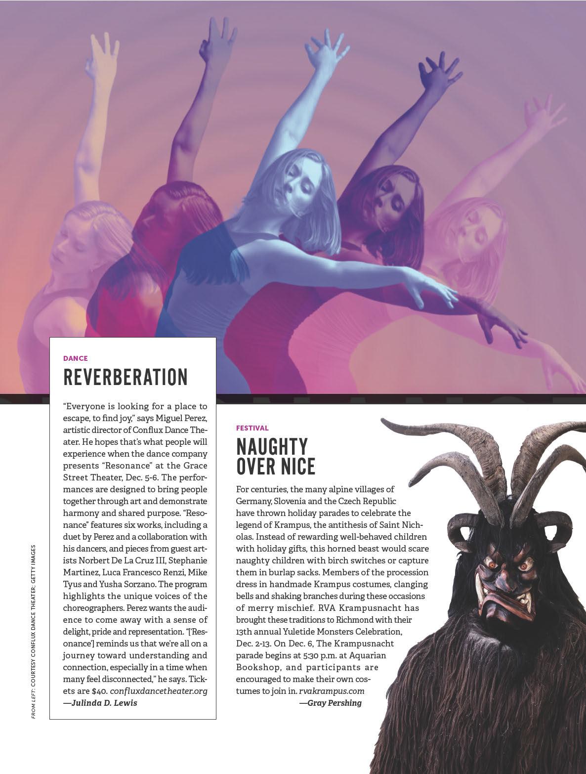 It’s not hard to catch a class around town; some all-purpose gyms host introductory and specialized classes, while barre-only studios are opening or expanding every year. In addition to barReVA and City Barre, Pulse Barre hosts daily classes in Mechanicsville, and e Hot Yoga Barre, with locations in Henrico and Midlothian, o ers barre and yoga classes in heated studios. e national chain Pure Barre also operates three locations in the region. R