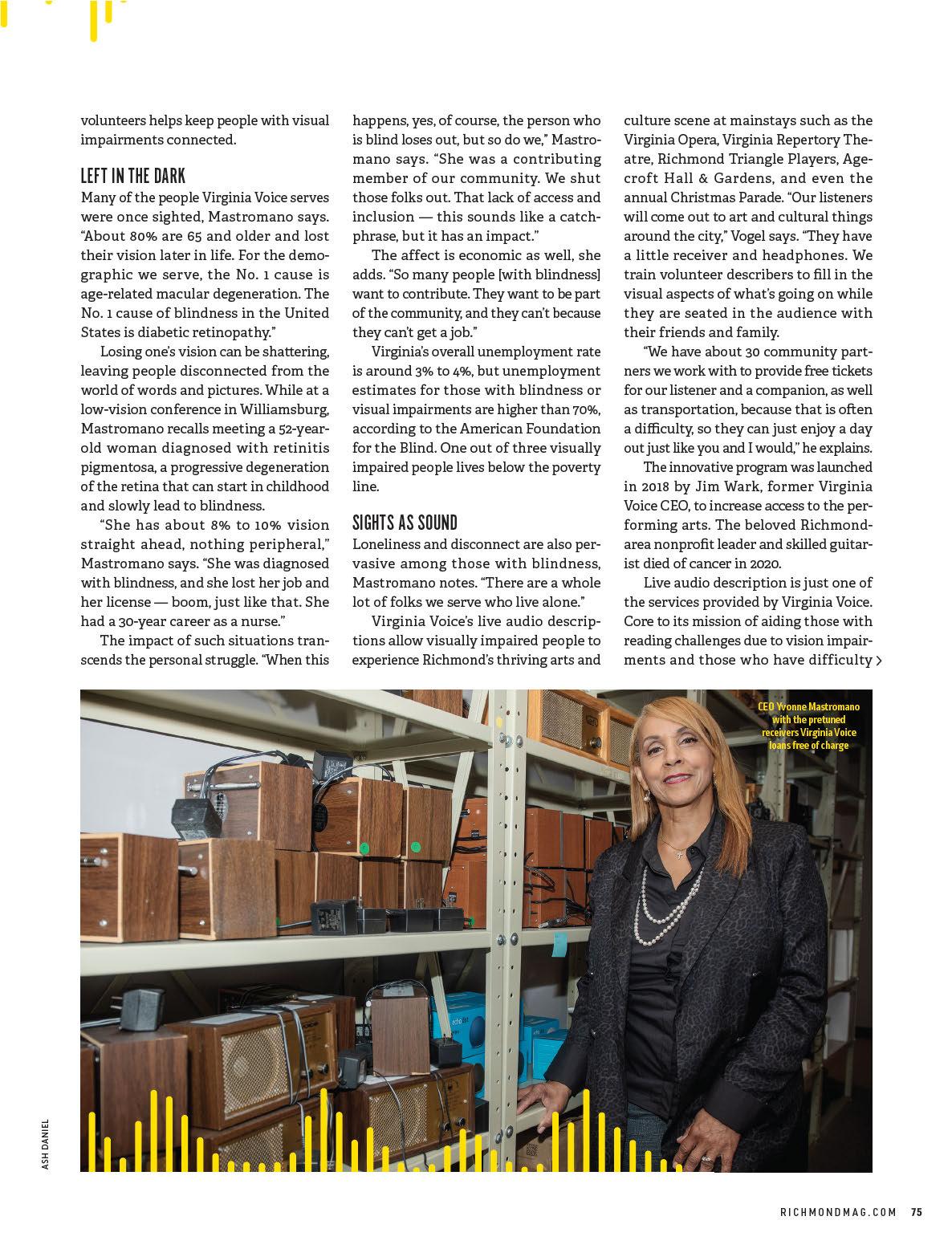 “I’d like to think that my alma mater, VCU, is be er than it was in the past and will continue to strive toward inclusive excellence,” Parsons-Pollard says. “Charlo e Anne Wynn Pollard was one of many people who moved the institution beyond its history.” R