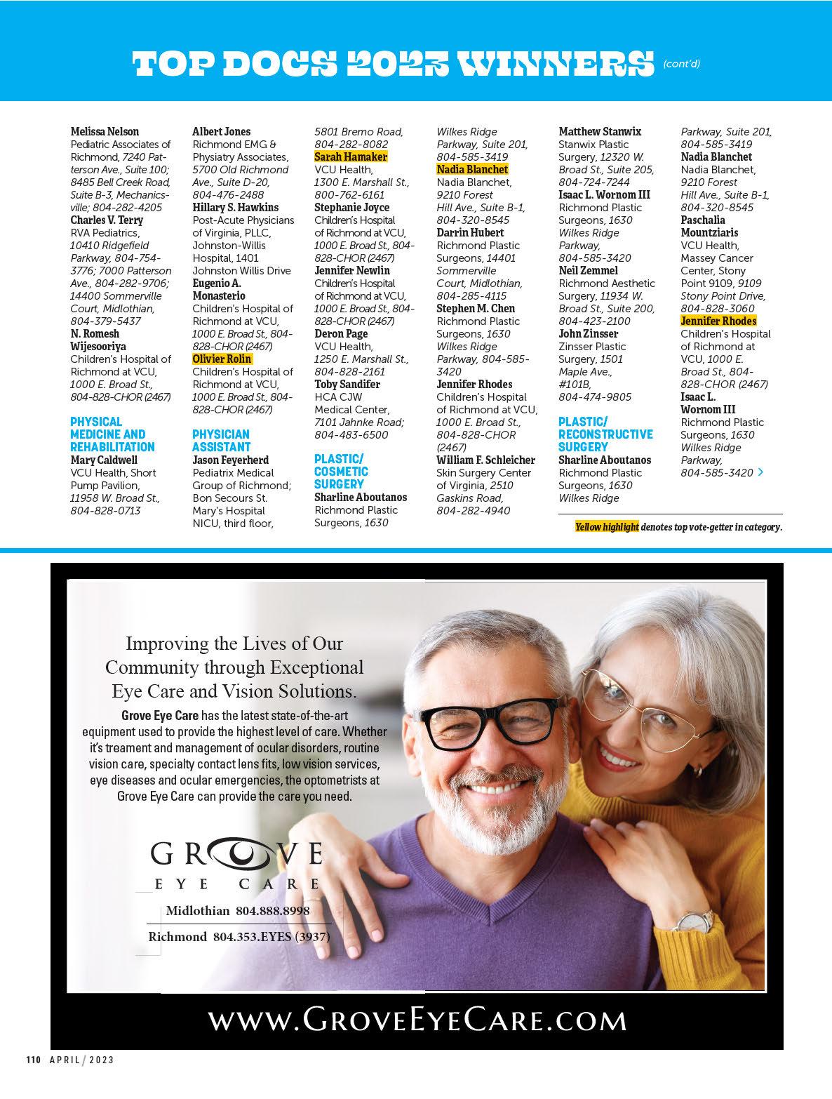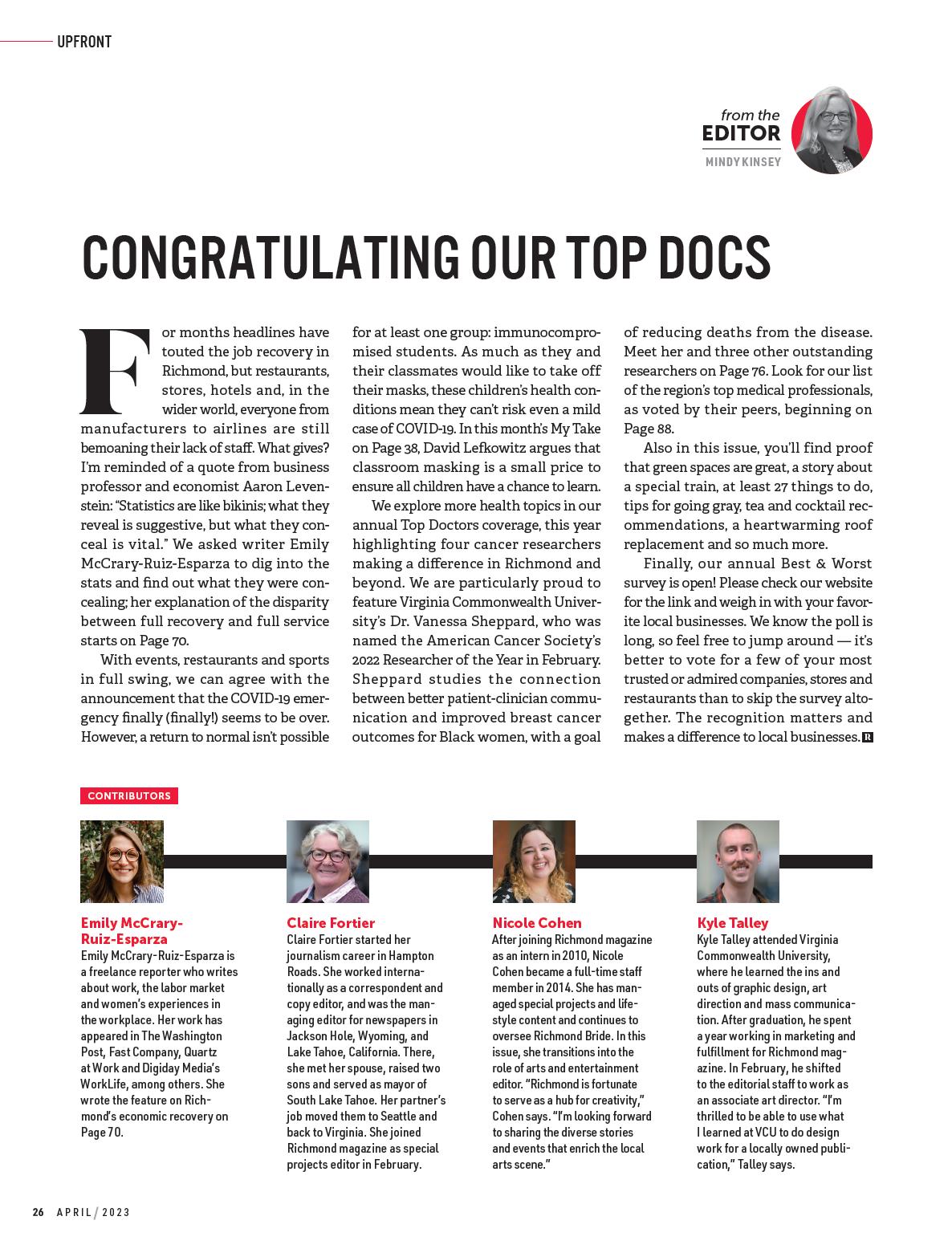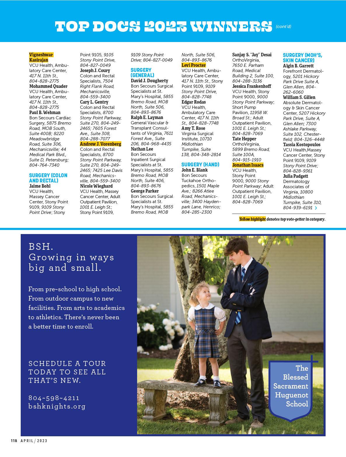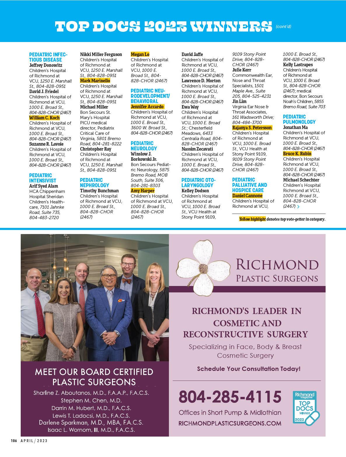 By Emily McCrary-Ruiz-EsparzaMeet four innovators working to advance cancer treatment; tour VCU’s new Children’s Tower; and explore the promise of ketamine in treating mood disorders. Plus, 492 top medical pros, as chosen by their peers.