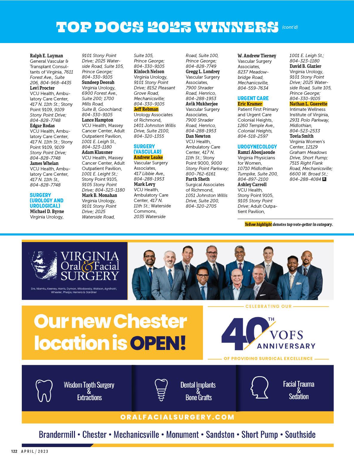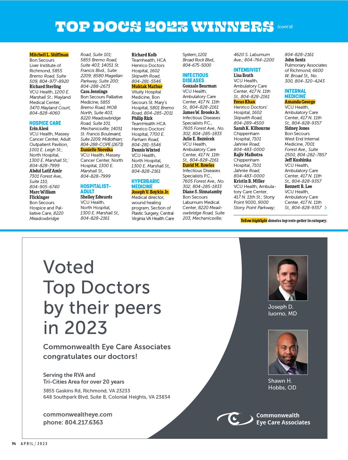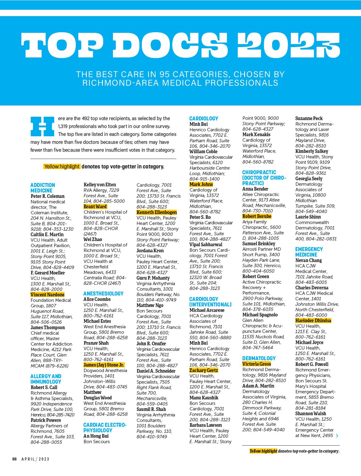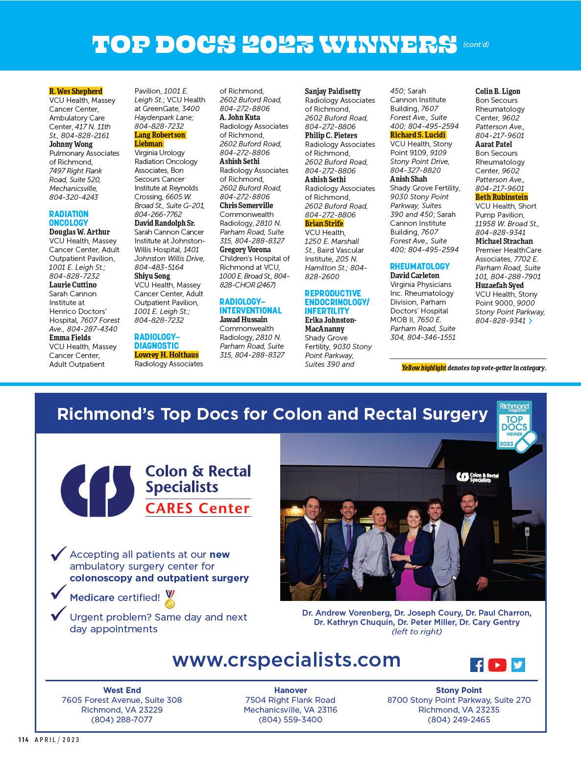 By Emily McCrary-Ruiz-EsparzaMeet four innovators working to advance cancer treatment; tour VCU’s new Children’s Tower; and explore the promise of ketamine in treating mood disorders. Plus, 492 top medical pros, as chosen by their peers.