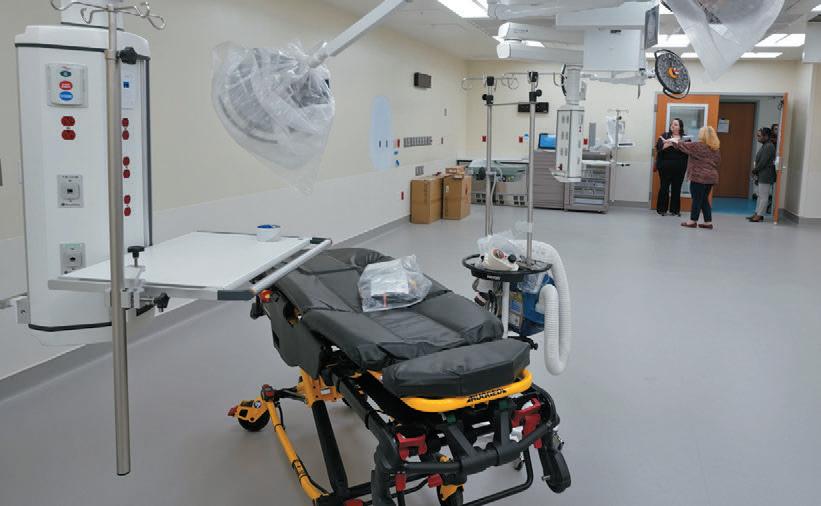 The pediatric trauma bay is intended to support two patients at a time, but it’s designed with flexible monitoring capabilities to be able to serve multiple patients in the event of an emergency. “It would be tight, but we can do that,” Lowerre says.