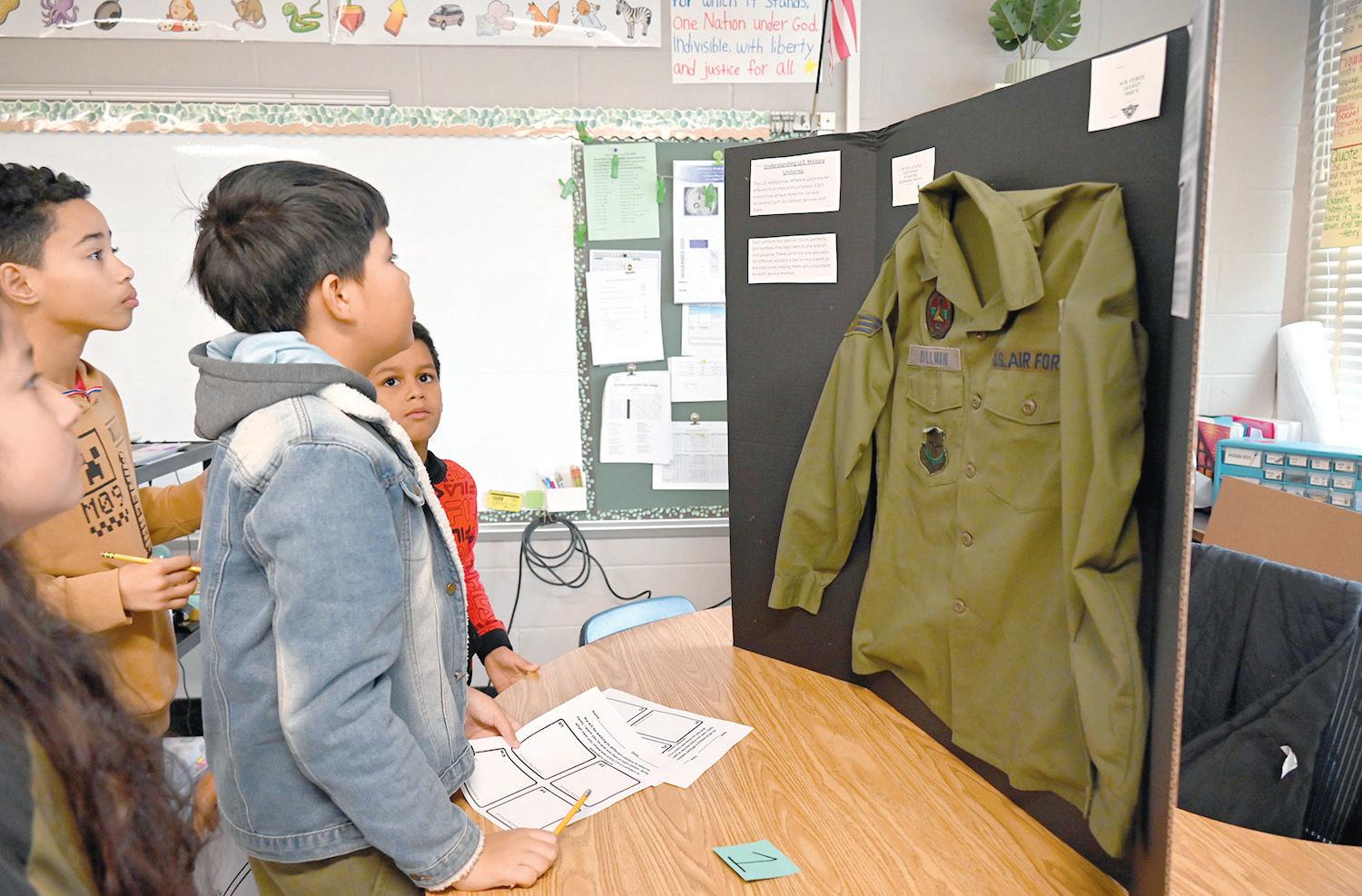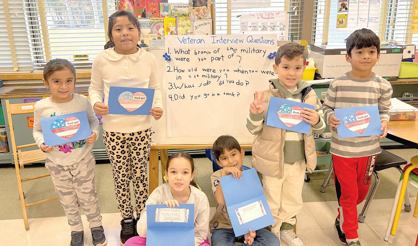 riculum, fifth grade students rotated through classrooms for a series of interactive Veterans Day lessons. To further their understanding of the day, they created poetry, viewed educational videos and took part in a museum walk with authentic artifacts such as a military uniform, patches, books and telegrams. Students discussed and analyzed these items while learning to distinguish between primary and secondary sources. Through these experiences, students across the grades deepened their appreciation for veterans and the sacrifices they have made for our freedom.