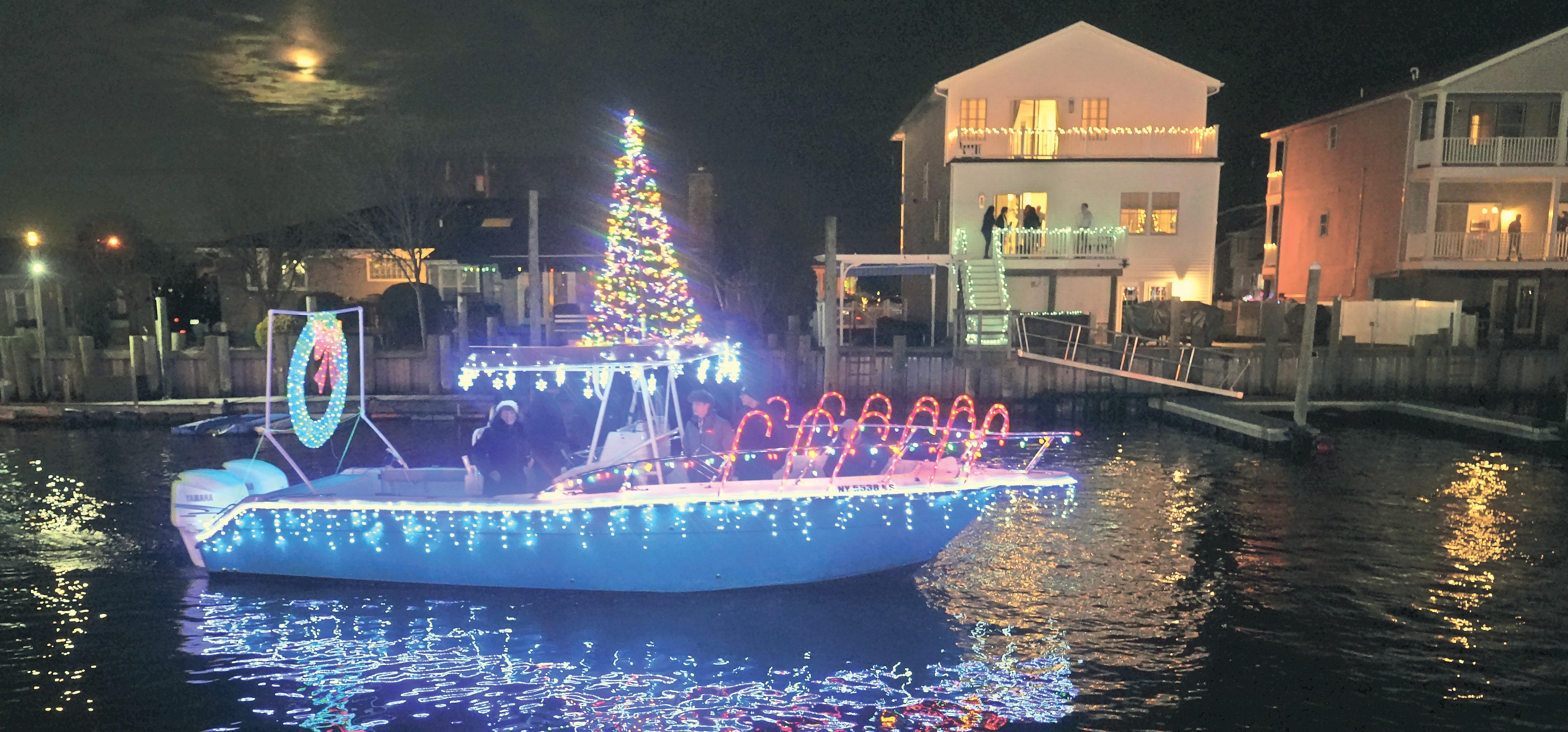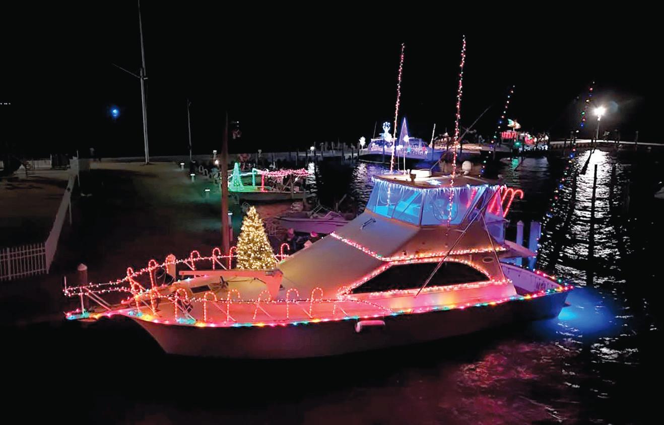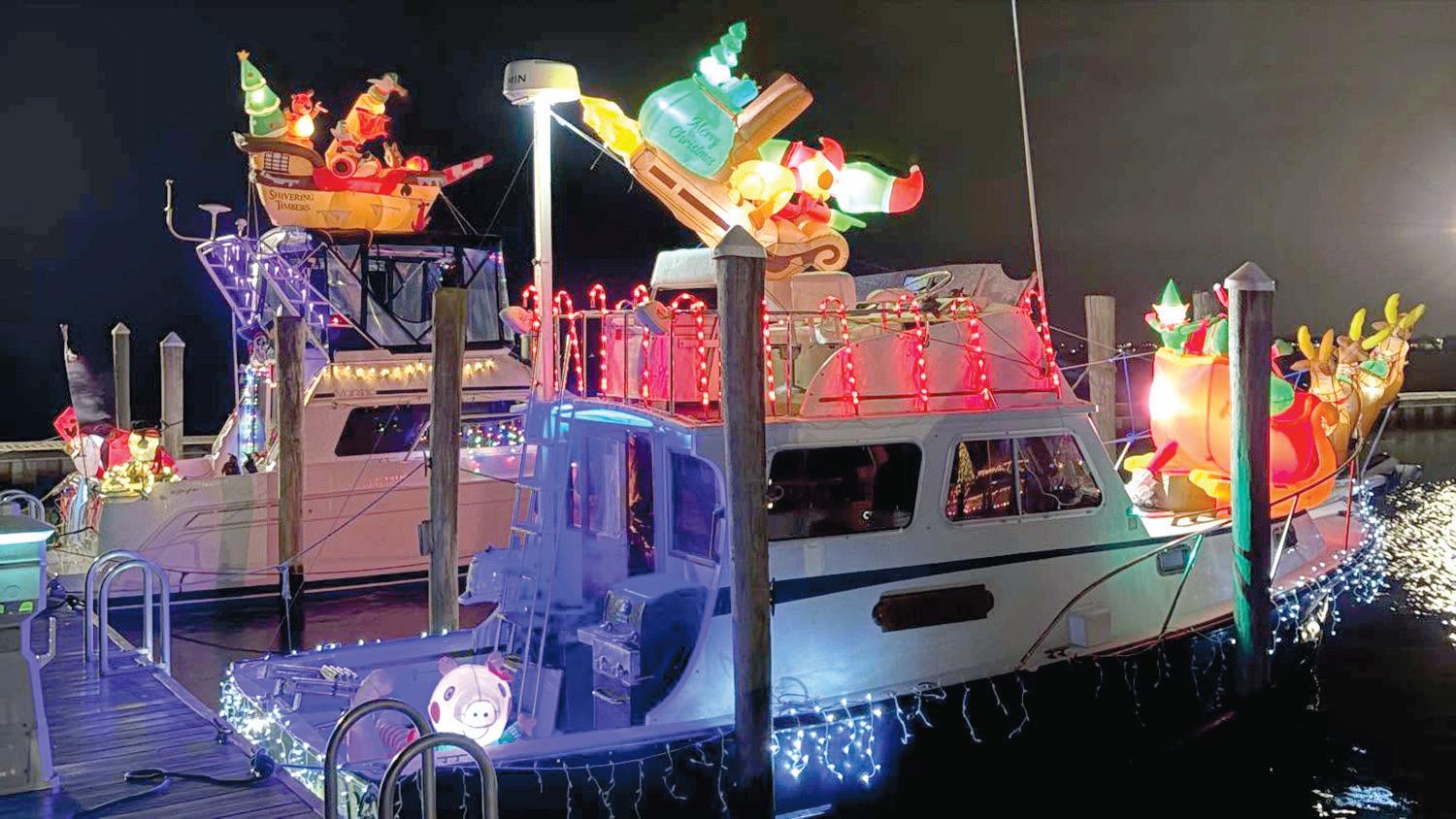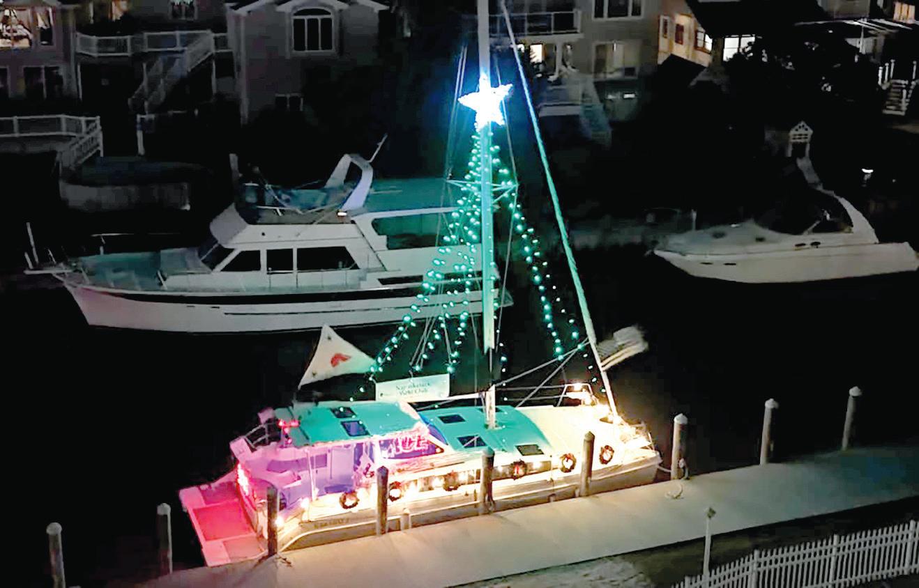 Fourteen boats took part in this year’s parade, their lights reflecting off the dark December water. Afterward, guests gathered inside the yacht club for cocktails, food and raffles.