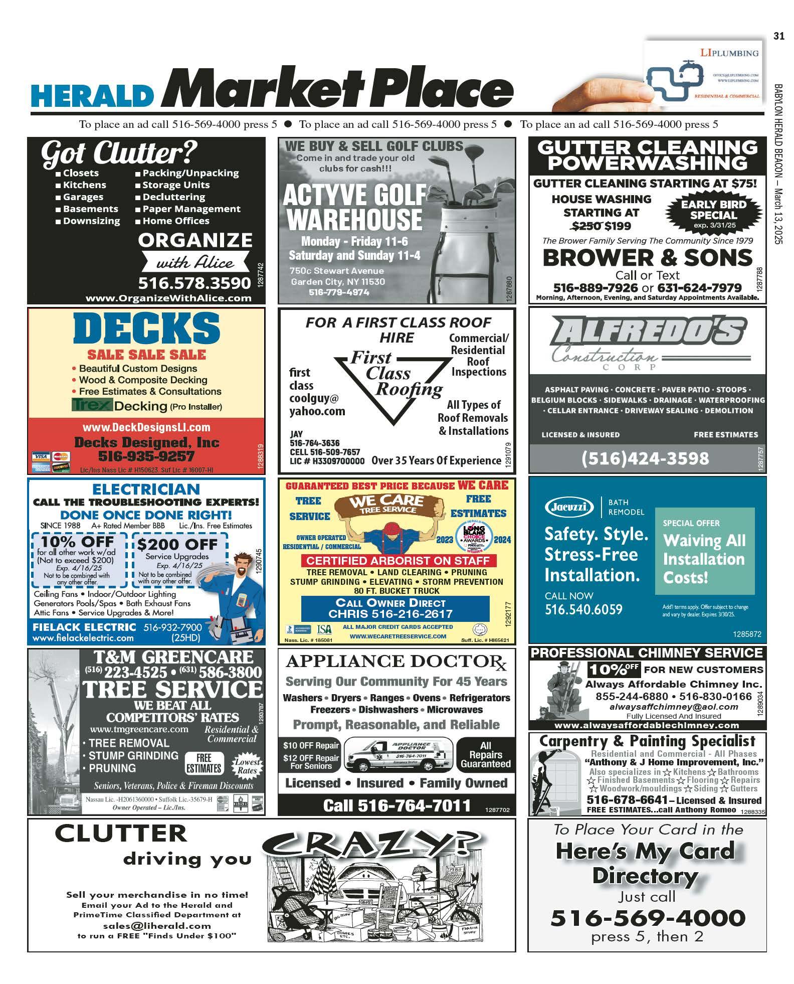 • The North Babylon Chamber’s Annual Beach Cleanup at Overlook Beach is scheduled for Saturday, April 5, from 10 a.m. to 1 p.m. Gloves, bags, and pickers will be provided, and students can earn community service hours.