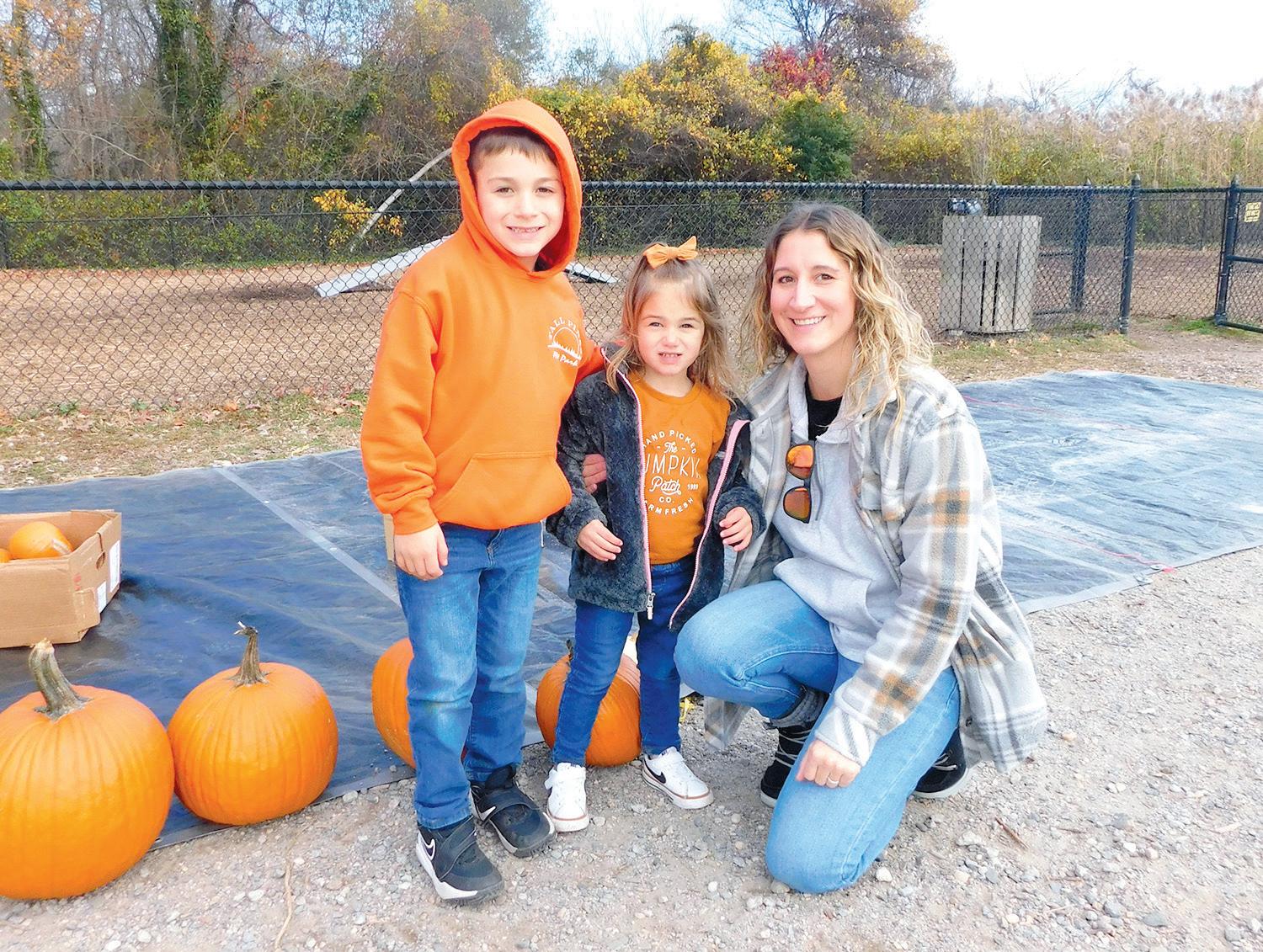Nicole Oliveto getting ready to smash some pumpkins with her children Dominick and Adrianna.