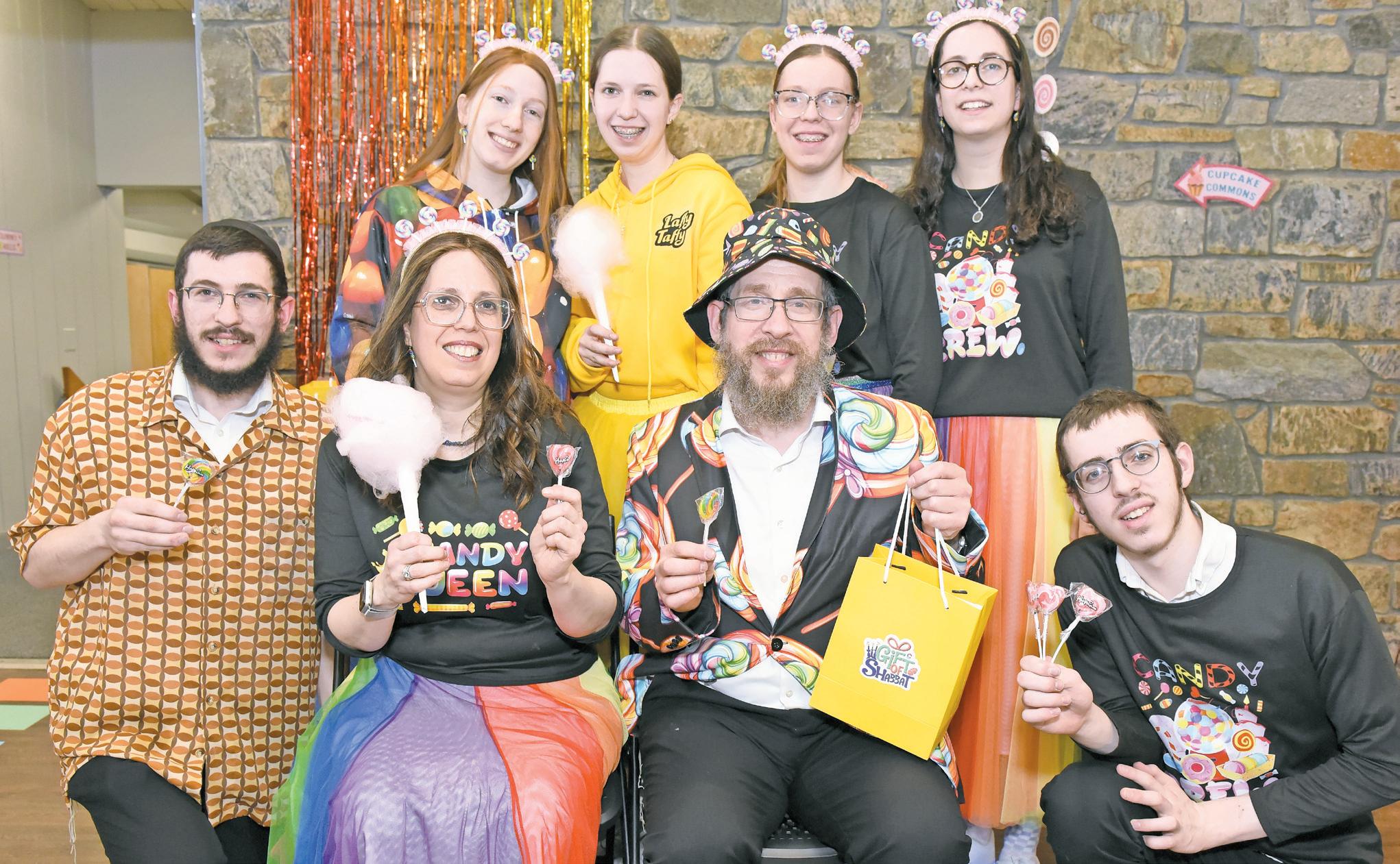 The Chabad Center of Merrick-Bellmore-Wantagh celebrated the holiday of Purim at Candyland-themed celebration. Rabbi Shimon Kramer, with his wife Chanie, and their children at the March 14 event.