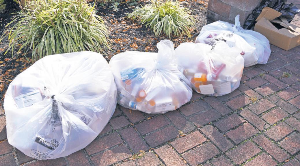 Bags of collected medications await disposal following last year’s “Shed the Meds” event. Organizers say the community has safely turned in as much as 400 pounds of unused or expired drugs in past years — helping prevent misuse and protecting local waterways from contamination.