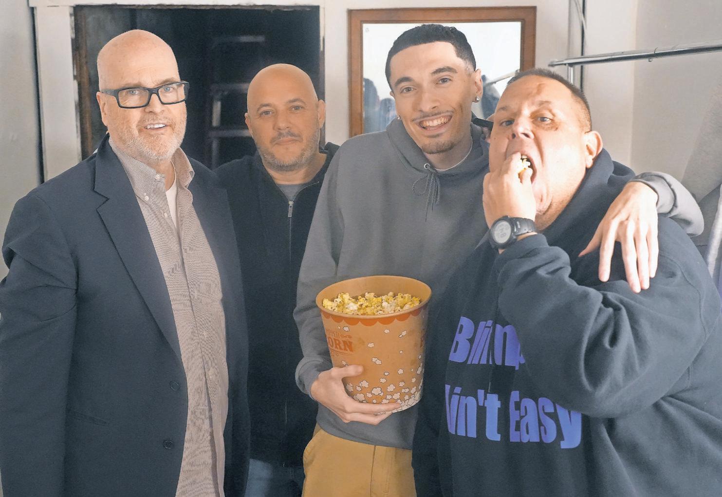 Comedians Tim Gage, from left, Vinny D’Agostino, Joe Crovella, and Fat Jay all participated in the charity fundraiser at the Bellmore Movies and Showplace on Oct. 16.