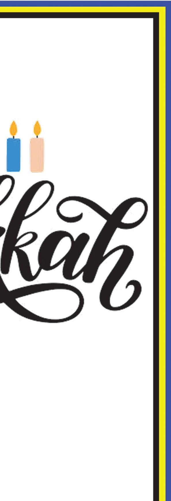We invite you to join us as we celebrate Hanukkah and bring its message of hope and unity into our homes, our neighborhoods, and our hearts. For more information, visit chabadjewishlife. org/light. May the lights of the holiday inspire all of us to stand tall, support one another, and share our inner warmth with the world.