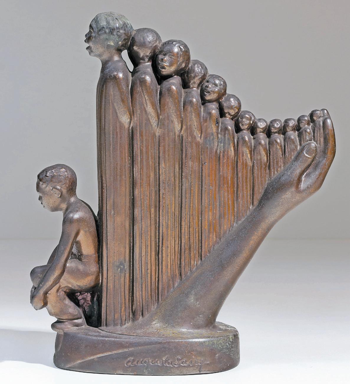 in 1939, augusta Savage sculpted “the Harp,” inspired by the song “Lift every Voice and Sing.” the sculpture was done in plaster and was originally commissioned for the 1939 new York’s World’s fair in flushing meadow. the original sculpture stood at 16 feet high, before being destoryed in 1940 along with other works.