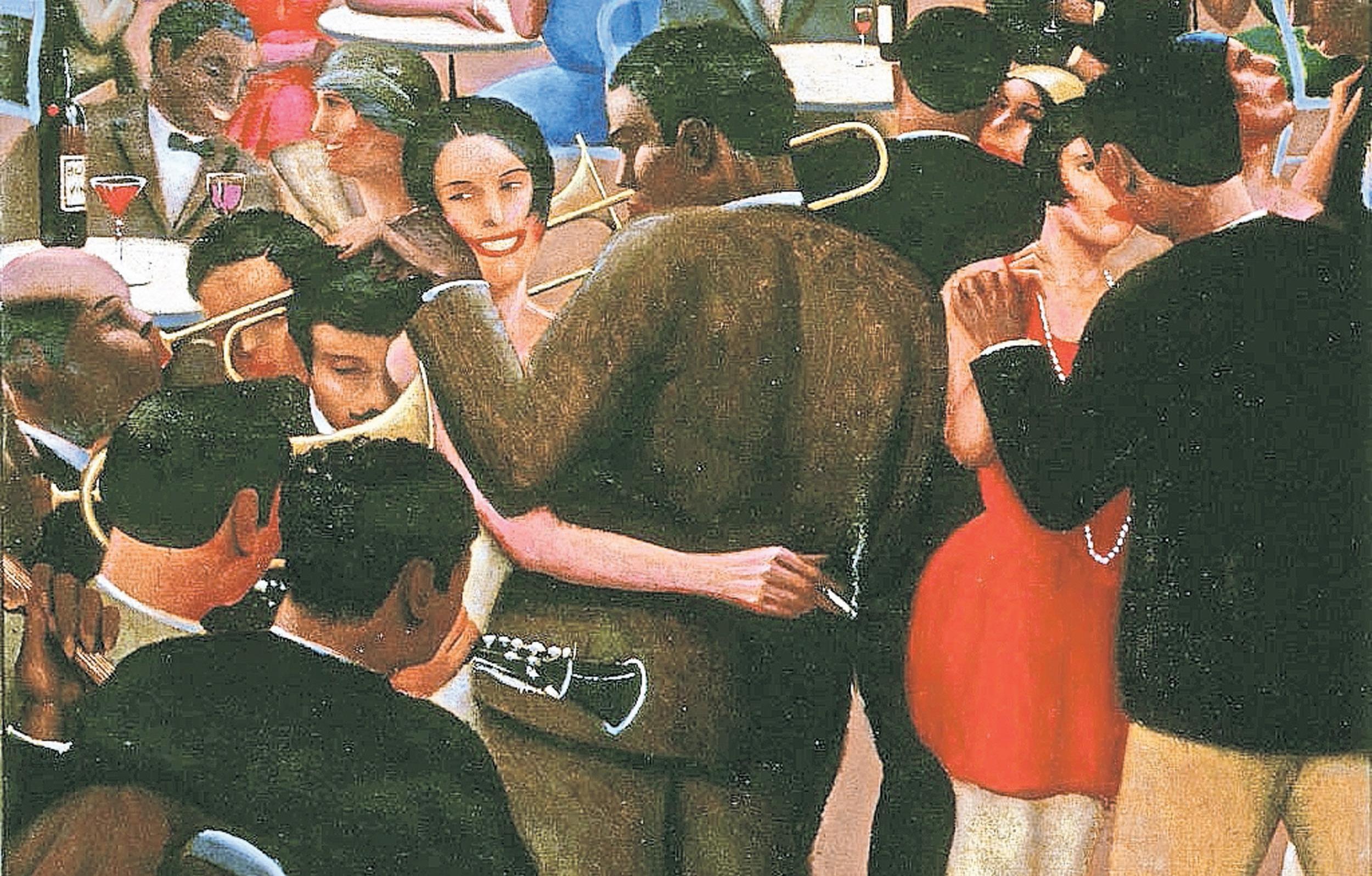 “Blues,” a 1929 painting by archibald J. motley Jr., depicts a club in paris, where Black culture grew significantly at the time.