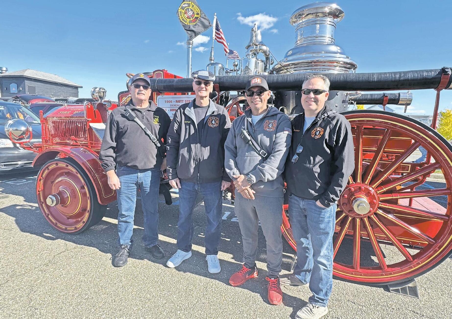 Robert Notheis, Honorary Chief George Schmittzeh, Capt. Randy Aguirre, and Robert McLaughlin, ex-captain and current village attorney.