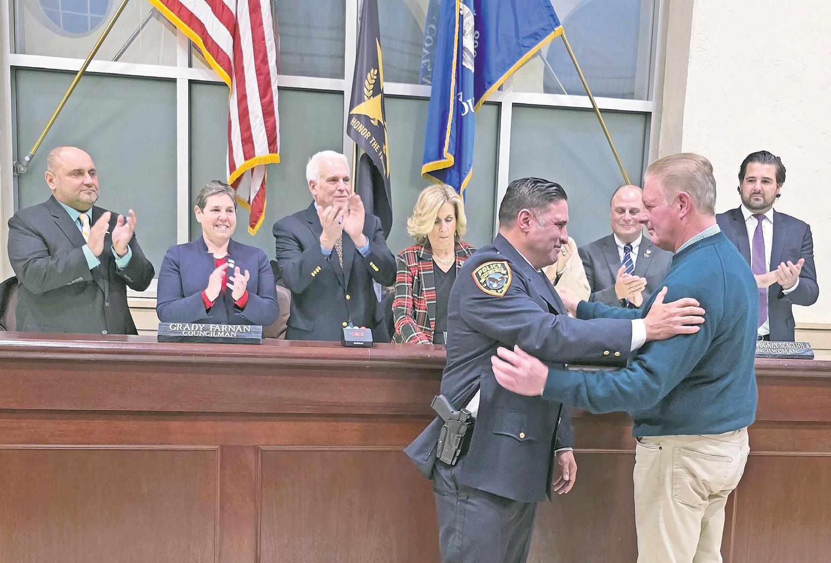 Mayor Pamela Panzenbeck praised both men. “I never have to worry when it comes to our Police Department,” she said. “They handle every situation with expertise and calm, and when Chris says he’s taking care of something, he does. I’m grateful to serve as mayor during this moment, and we fully support you. Thank you for taking on this responsibility, and for keeping Glen Cove safe.”