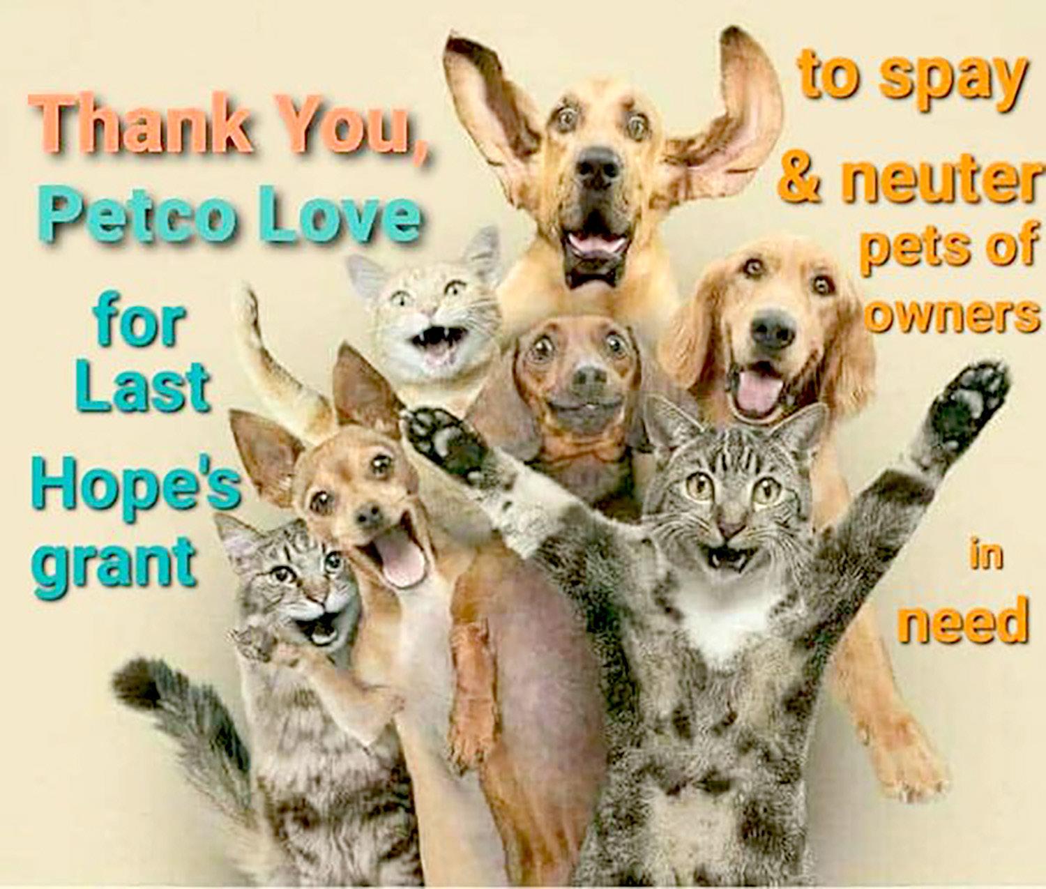Last Hope Animal Rescue received a $15,000 grant from Petco Love that will enable us to provide spay/ neuter at a very low price for the dogs and cats of local owners in financial need.