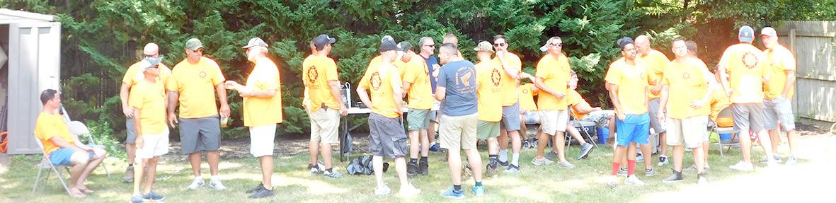 Shown in photo are: Standing: Isabella Meichsner, Greg Jemison, Mike Scalia, John Martin, Nicholas Minguillon, Chuck P, PM Bob Farrell, Donal Morrissey, Olivia Meichsner. Kneeling left to right: Drum Sgt Eric Meichsner, Bib Mulligan, Pat Mulligan, Katie Kavanaugh, Brian Meichsner.