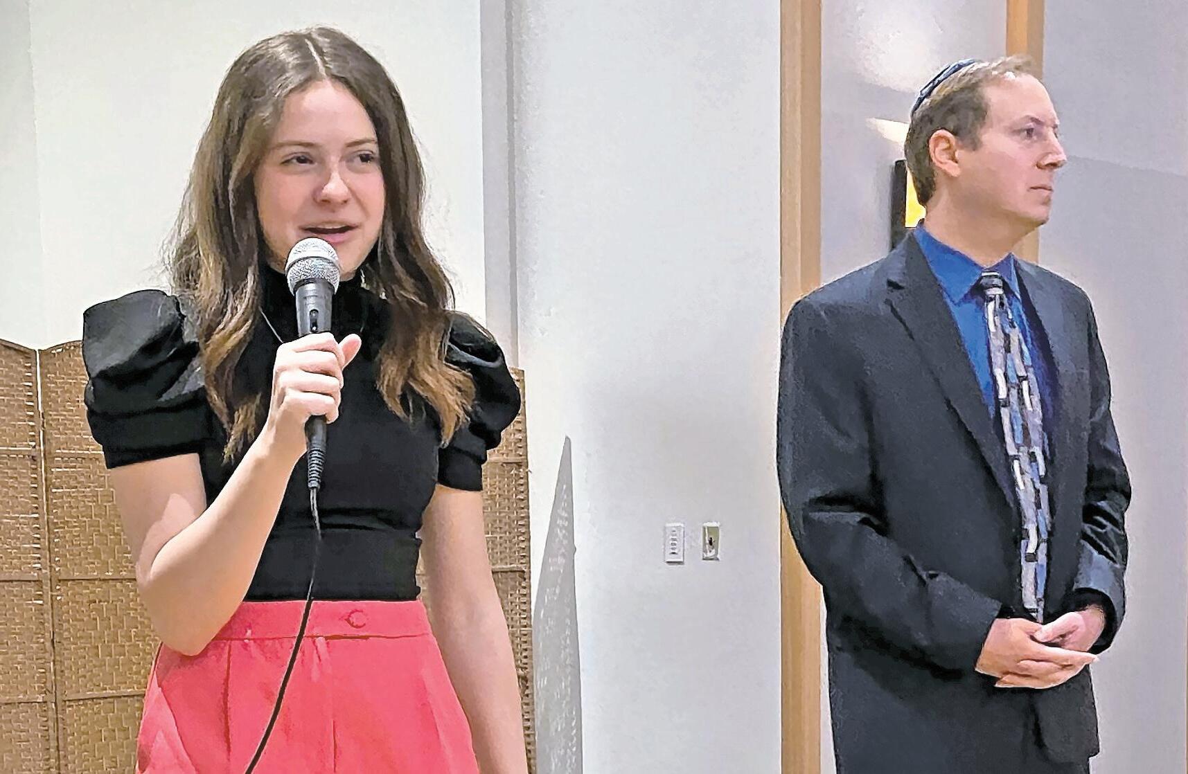 Glassman, who is a congregant of East Meadow Beth-El, shared with the room that as she proudly displays her Jewish star necklace, it is usually met with a comment or two from classmates in the hallway. She’s witnessed swastikas in her school’s bathrooms, and heard classmates make jokes about gas chambers.