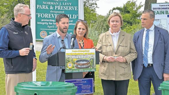 The Town of Hempstead is taking a progressive approach to combatting water conservation issues on Long Island. Supervisor Don Clavin, joined by colleagues in government, as well as Frank Piccininni and Marshall Brown of the Long Island Conservancy, announced its plan to launch a new rain barrel program last week at the Norman J. Levy Park and Preserve in Merrick.