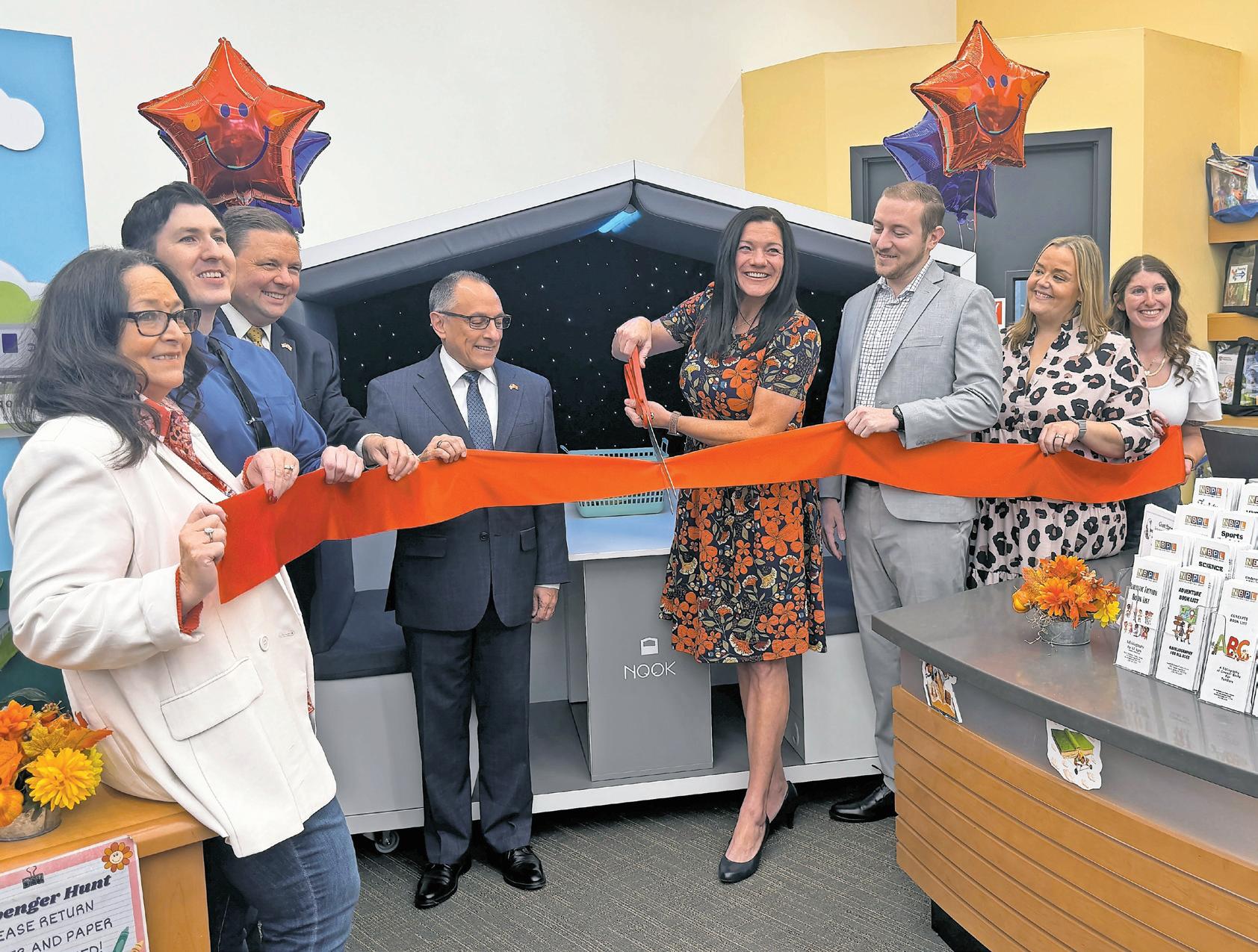 The North Bellmore Public Library has a new Sensory Nook Pod, which is a certified autism resource promoting a calming environment for children with special needs. Library staff and elected officials celebrated its arrival with a ribbon cutting on Oct. 1.
