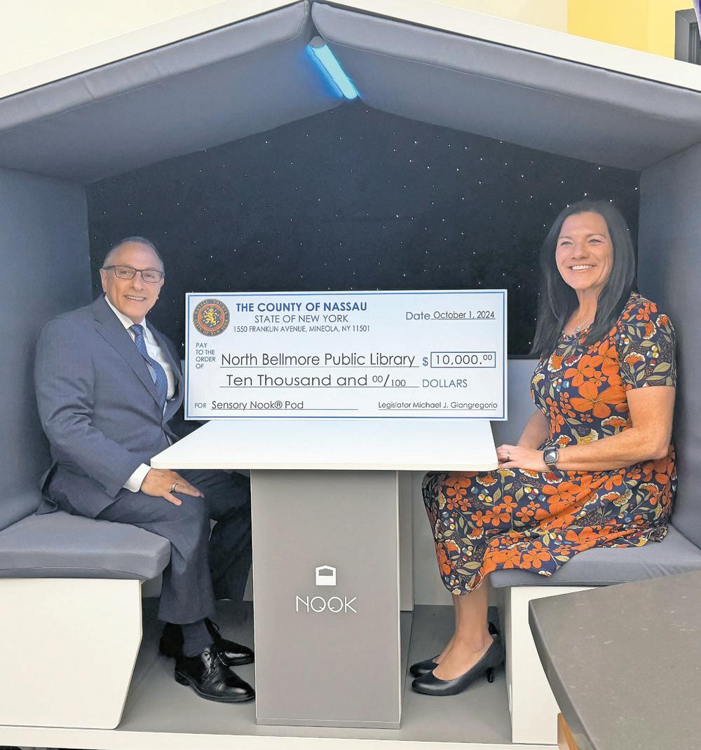 The new nook, installed in the children’s wing of the library, was made possible through a community revitalization project grant, which was supported by Nassau County Legislator Michael Giangregorio, who represents parts of Merrick and Bellmore.