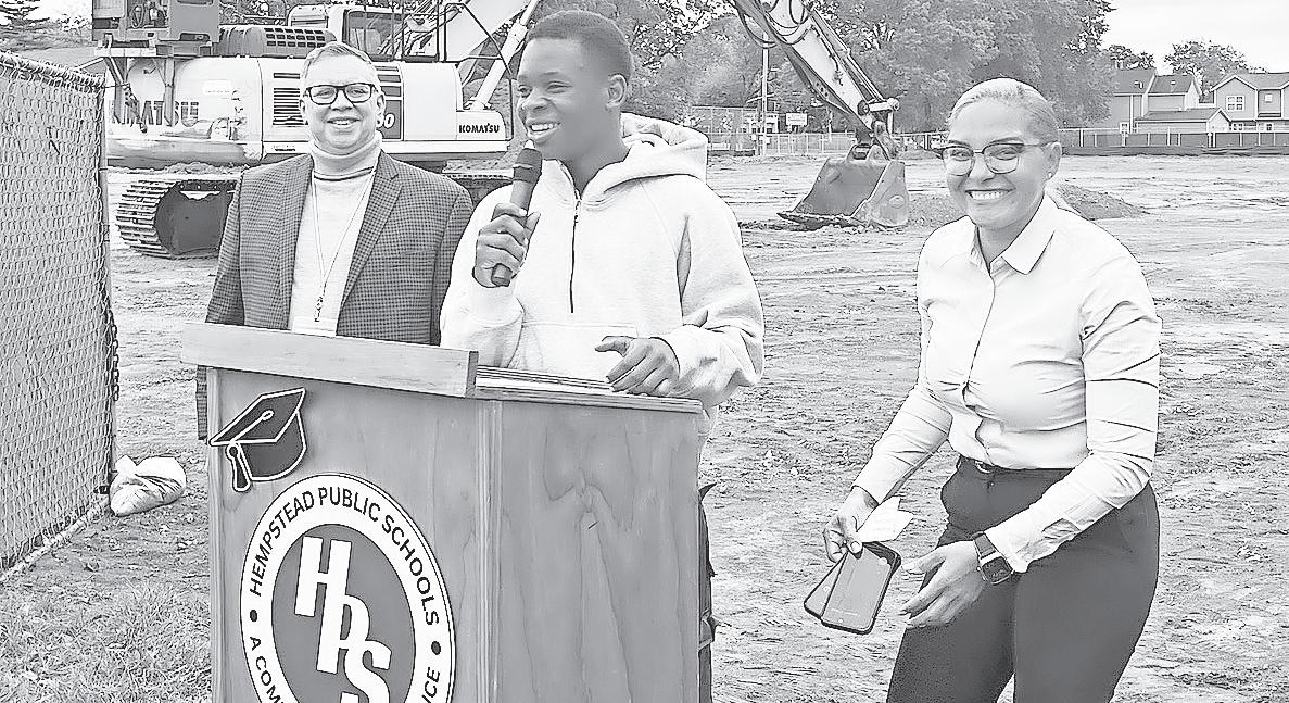 The hands grasping the shovels were those of Hempstead students, teachers, administrators, and school board members. Among them were Deputy Town Supervisor Dorothy Goosby, Nassau County Legislator Scott Davis, and Hempstead educator and former mayor Don Ryan.