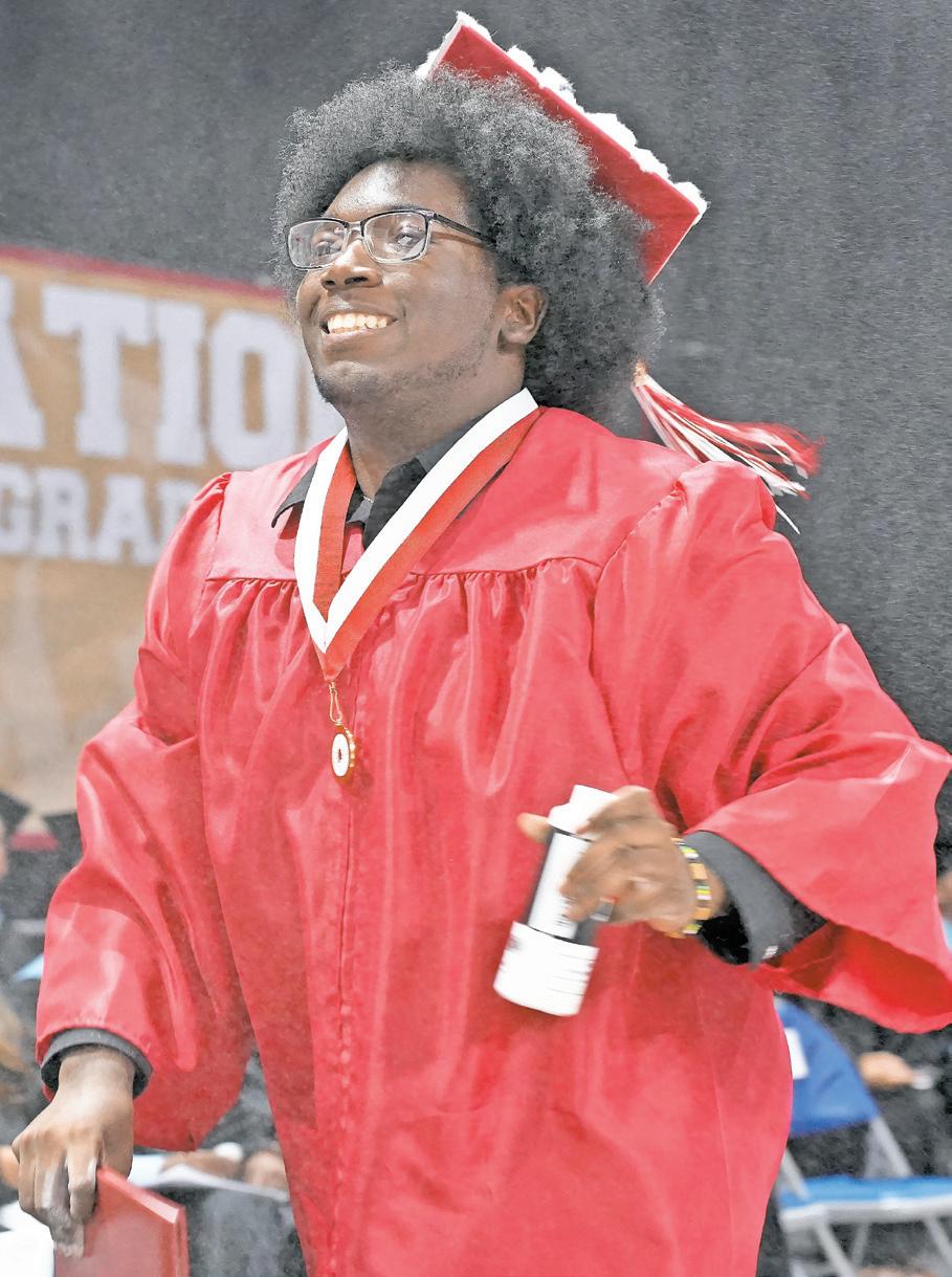 taneece wooden MaKeS her way down the stage, her face beaming as she holds her high school diploma.